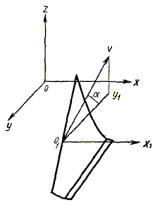 передней плоскостью ножа крыла и горизонтальной плоскостью