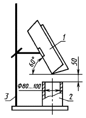 где т - масса муки в сосуде, г; V - вместимость сосуда, см3. За результат принимают среднее арифметическое двух определений, абсолютное допускаемое расхождение между которыми не должно превышать 5 кг/м3. Результат округляют до целого числа. 1 - желоб из оцинкованной стали; 2 - измерительный сосуд вместимостью (1000 ± 2) см3; 3 - штатив Черт. 2 7. ОПРЕДЕЛЕНИЕ ОСТАТКА НА СЕТКЕАнализатор ВС 1С-15-01 или ВС 1С-15-02 с набором сит с сетками номер 1, 25, 063, 056, 0355, 025, 02, 018, 014, 0125, 01, 0063 по ГОСТ 6613. Весы лабораторные не ниже 4-го класса точности с наибольшим пределом взвешивания не более 1000 г, с ценой деления не более 0,01 г. 7.2. Проведение испытания 10,00 г древесной муки сортируют на первом сите в соответствии с порядком установки сит для данной марки муки. По окончании сортирования остаток взвешивают. Результат взвешивания в граммах записывают с точностью до второго десятичного знака. Остаток сортируют на следующем сите с повторением операций. Порядок установки сит, номера сеток, статическое избыточное давление воздуха и время сортирования указаны в табл. 1. Таблица 1