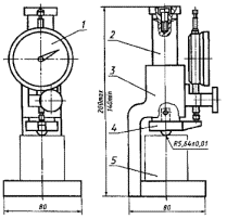 1 - индикатор; 2 - шток; 3 - корпус; 4 - съемный пуансон; 5 - образец Разд. 2 . (Измененная редакция, Изм. № 1). 3. ПРОВЕДЕНИЕ ИСПЫТАНИЯ3.1. Статическую твердость определяют на поверхностях тангентального, радиального и поперечного разрезов древесины. 3.2. Образец помещают в приспособление, как показано на чертеже. На пересечении диагоналей по грани образца вдавливают пуансон на глубину 5,64 мм, а в случае раскалывания образцов - на глубину 2,82 мм. Постоянная скорость нагружения или перемещения нагружающей головки машины должна быть такой, чтобы необходимая глубина вдавливания пуансона в образец была достигнута не менее чем через 1 мин и не более чем через 2 мин после начала нагружения. При использовании машины с электромеханическим приводом допускается вдавливать пуансон с постоянной скоростью от 3 до 6 мм/мин. При достижении указанной глубины вдавливания пуансона в образец определяют нагрузку F c погрешностью не более 1 %. 3.3. После испытания определяют влажность образцов по ГОСТ 16483.7. В качестве пробы на влажность берут части образца массой около 10 г, имеющие отпечатки. Минимальное количество испытываемых на влажность образцов должно соответствовать ГОСТ 16483.0. 4. ОБРАБОТКА РЕЗУЛЬТАТОВ4.1. Статическую твердость