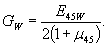 где P - нагрузка, равная разности между верхним и нижним пределами нагружения, Н; l - база тензометра, м; ∆l - средняя величина перемещения, соответствующая нагрузке Р, м; a и b - размеры поперечного сечения образца, м. Модуль сдвига образцов (GW) с влажностью W в момент испытания вычисляют до Gra и Gta с точностью до 0,5·107 Па и не более 0,5·106 Па для Grt с учетом знака при μ45 по формуле