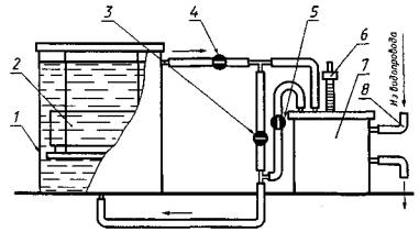 1 - сосуд; 2 - сорбционная камера; 3, 4, 5 - краны; 6 - контактный термометр; 7 -