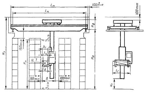 * Размеры действительны для всех типов кранов-штабелеров одной и той же