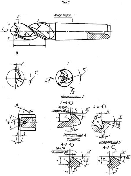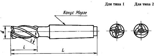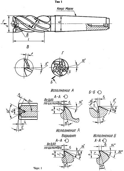 * Табл. 2, 2a, 2б исключены. 1.4. Фрезы должны изготовляться праворежущими, леворежущие фрезы - по требованию потребителя. В хвостовиках леворежущих фрез направление резьбы должно быть левое. 1.5. Угол наклона стружечных канавок w: 30-35° для фрез типа 1; 35-45° для фрез типа 2. 1.6. Размеры конусов Морзе - по ГОСТ 25334. 1.7. Центровые отверстия - по ГОСТ 17024. (Измененная редакция, Изм. № 5). 1.7а. Допускается цилиндрическая выточка со стороны рабочей части. (Введен дополнительно, Изм. № 5). 1.8. Элементы конструкции и геометрические параметры фрез указаны в приложении 1. 1.9. (Исключен, Изм. № 5). 1.10. Технические требования - по ГОСТ 17024. 1.11. Размеры фрез по ИСО 1641-2 приведены в приложении 2. (Введен дополнительно, Изм. № 5). ПРИЛОЖЕНИЕ 1