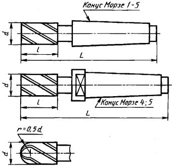 Размеры фрез указаны на черт. 3 и в табл. 3, 4.