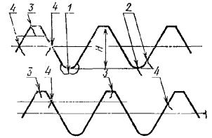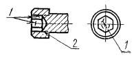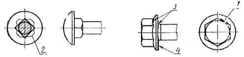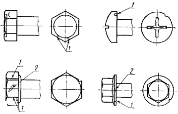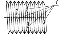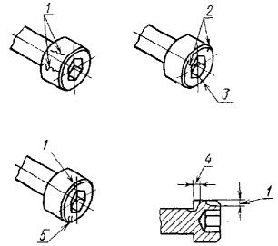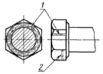 Постановлением Государственного комитета СССР по стандартам от 29 июля 1982 г. № 2955 срок введения установлен с 01.01.83 Настоящий стандарт распространяется на болты, винты и шпильки с номинальными диаметрами резьбы от 1 до 48 мм. Допускается распространять требования настоящего стандарта на шурупы (кроме требований по дефектам резьбы). Стандарт полностью соответствует СТ СЭВ 2179-80. 1. ВИДЫ ДЕФЕКТОВ ПОВЕРХНОСТИ1.1. Трещины Трещины представляют разрушения, возникающие на границах или внутри кристаллов, а также в месте расположения неметаллических включений в результате перенапряжения металла в процессе обработки. В случае, если изделия с трещинами подвергаются нагреву, то поверхность трещины обычно покрывается окалиной. Трещины напряжения могут возникнуть в процессе термической обработки вследствие термических и деформационных напряжений. Трещины напряжения обычно располагаются произвольно на поверхности изделия. На черт. 1 изображены типичные трещины напряжения. 1 - трещина напряжения на опорной поверхности головки; 2 - трещина напряжения круговая на радиусе под головкой болта или винта; 3 - трещина напряжения на ребре шестигранника; 4 - трещина напряжения в поперечном направлении; 5 - трещина напряжения во впадине резьбы; 6 - трещина напряжения на вершине резьбы; 7 - поперечная трещина напряжения на торце головки, часто имеющая продолжение на стержне и на боковой поверхности головки; 8 - трещины напряжения в продольном направлении; 9 - трещина напряжения с радиальным проникновением внутрь радиуса под головкой; 10 - трещина напряжения. Черт. 1 1.1.2. Штамповочные трещины Штамповочные трещины могут возникнуть при отрезке заготовки и последующей штамповке изделия. Они расположены в пределах головки или конца стержня. На черт. 2, 3 и 4 изображены типичные штамповочные трещины. 1 - штамповочная трещина на головке Черт. 2 1 - штамповочные трещины на образующей головки, имеющие осевое направление; 2 - штамповочные трещины на торце головки; 3 - штамповочные трещины, которые простираются от внутреннего шестигранника до образующей головки; 4 - штамповочные трещины в продольном направлении; 5 - штамповочные трещины, начинающиеся от образующей головки, проходящие в поперечном направлении таким образом, что возможно их пересечение Черт. 3 1 - штамповочные трещины на гранях внутреннего шестигранника; 2 - штамповочная трещина у дна внутреннего шестигранника Черт. 4 1.2. Раскатанные пузыри Раскатанные пузыри являются дефектом исходного материала. Они имеют вид узких, в большинстве случаев прямых или слегка изогнутых дефектов, которые располагаются вдоль стержня или головки. Они могут возникать на торце головки, гранях шестигранника, опорной поверхности головки и на радиусе под головкой. На черт. 5 изображены типичные раскатанные пузыри. 1 - раскатанные пузыри, представляющие собой продольный дефект, располагающийся по прямой или слегка изогнутой линии; 2 - раскатанный пузырь Черт. 5 1.3. Рванины Рванины являются открытыми разрывами в металле. Они могут возникать на поверхностях или кромках головки, на образующих круглых головок, а также на кромке углублений в шестигранных головках. На черт. 6 изображены типичные рванины. 1.4. Трещины сдвига Трещины сдвига возникают чаще всего на кромках круглых головок и располагаются под углом 45° к оси изделия. Трещины сдвига мог