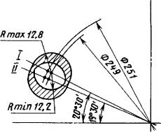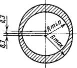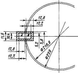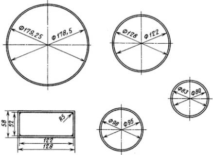 (Измененная редакция, Изм. № 1). 3.4. При получении неудовлетворительных результатов испытаний проводят повторный контроль на удвоенном количестве деталей, взятых от той же партии. Результаты повторных испытаний распространяются на всю партию. 4. МЕТОДЫ ИСПЫТАНИЙ4.1. Испытания должны проводиться в помещении с температурой воздуха 15-35 °С и относительной влажностью 45-75 %. 4.2. Вычисление содержания деталей с заданными характеристиками в совокупности всех испытанных образцов производят с точностью до десятых и округляют до целых по следующему правилу: если отбрасываемая цифра в последнем разряде равна 5, нечетную цифру предыдущего разряда увеличивают на единицу, а четную или нуль оставляют без изменения, например: результат вычисления 91,5 % округляют до 92 %; результат вычислений 90,5 % округляют до 90 %; результат вычислений 92,5 % округляют до 92 %. 4.3. При возникновении разногласий в оценке качества деталей измерения проводят с погрешностью, не превышающей 0,3 величины погрешности измерения, допускаемой настоящим стандартом. Погрешность, допускаемую при измерении линейных размеров деталей определяют по ГОСТ 8.051. 4.4. Отбор образцов для испытаний 4.4.1. Для проверки соответствия деталей требованиям пп. 2.1 (кроме требований к диаметру круглых отверстий и толщине), 2.2, 2.3, подпункта 8 табл. 2 отбирают 10 % деталей от выборки, но не менее 10 шт. 4.4.2. Для проверки соответствия деталей требованиям п. 2.1 в части требований к диаметру внутренних отверстий отбирают не менее 50 шт. деталей от выборки. 4.4.3. Для проверки соответствия деталей требованиям пп. 1.1, 2.1 (в части требований к толщине), 2.4, 2.5 (кроме подпункта 8 табл. 2), 2.7 отбирают не менее 100 шт. деталей от выборки. 4.5. Проверка соответствия деталей требованиям чертежа (кроме требований к диаметру круглых отверстий и толщине). Для проверки соответствия деталей требованиям чертежей применяют: проектор измерительный по ГОСТ 19795; шаблон, на котором нанесены предельные контуры деталей. Построение шаблона производят по методике расчета и построения чертежей на шаблоны для контроля слюдяных деталей электронных приборов, приведенной в приложении. 4.5.2. Подготовка к проведению проверки Перед проверкой деталей на проекторе при необходимости протирают поверхность детали бязевой тканью по ГОСТ 29298. 4.5.3. Проведение проверки На проекторе проверяют форму детали, системы отверстий, фигурные отверстия и отдельные элементы контура. Деталь помещают на предметный столик проектора, а шаблон - на экран проектора. С помощью микровинтов совмещают изображение детали с шаблоном. При проверке размеров деталей сначала проверяют отверстия, затем контур детали и взаимное расположение элементов детали. При проверке деталей для двухсистемных приборов каждую соответствующую систему отверстий проверяют отдельно. Погрешность измерения не более 0,01 мм. 4.5.4. Обработка результатов Детали, системы отверстий, фигурные отверстия и отдельные элементы контура считают соответствующими чертежу, если их проекции укладываются в заданные контуры полей допусков. За результат проверки принимают отношение количества деталей, не соответствующих чертежу, к количеству проверяемых деталей, в процентах. 4.6. Проверка соответствия деталей требованиям чертежа к диаметру круглых отверстий 4.6.1. Аппаратура Для проверки применяют набор игловых калибров, имеющ