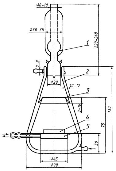 1 - водяной холодильник; 2 - межстенное пространство; 3 - желобок; 4 - металлическая пластинка; 5 - стеклянная площадка для размещения металлической пластинки СОДЕРЖАНИЕ