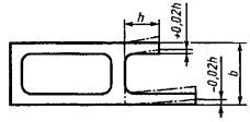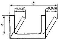 2.3. Предельные отклонения размеров поперечного сечения полых профилей не должны превышать значений, указанных в табл. 1, с коэффициентом 1,5. 2.4. Предельные отклонения размера b между свободными концами элементов поперечного сечения профилей, характерные формы которых приведены на черт. 1-4, устанавливают как сумму предельного отклонения номинального размера (табл. 1) и предельного отклонения наклона полок профиля, равного ±0,03h (высота полки).