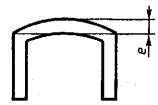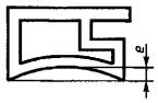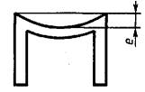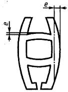 Черт. 4 2.5. Величину радиусов скругления углов, если они не указаны на чертежах и в стандартах, перечисленных в п. 2.1, устанавливают: не более 0,5 мм - при толщине полки и стенки до 3 мм включ.; » » 0,6 мм » » » » св. 3 до 6 мм » ; » » 0,8 мм » » » » 6 » 10 мм » ; » » 1,0 мм » » » » 10 » 18 мм » ; » » 1,2 мм » » » » 18 » 30 мм » ; » » 1,6 мм » » » » 30 » 50 мм » ; » » 2,0 мм » » » » 50 мм В местах сопряжения полок и стенок различной толщины допустимый радиус скругления определяют по большей толщине. 2.6. Предельные отклонения по радиусам скругления углов, не указанных на чертежах, не должны превышать: ±0,25 мм - для радиусов до 1 мм включ.; +10 % от величины номинала для радиусов свыше 1 мм, но не менее ±0,5 мм. 2.7. Величина притупления острых кромок, не указанная на чертежах, допускается: до 0,3 мм - при толщине полки или стенки до 3 мм включ.; » 0,5 мм » » » » » св. 3 до 15 мм включ.; » 1,0 мм » » » » » 15 мм. Радиусы скругления углов и притупления острых кромок величиной до 1 мм обеспечиваются технологией изготовления. 2.8. Угол скручивания вокруг продольной оси на любом участке профиля длиной 1 м не должен превышать: 3° - при ширине базовой поверхности до 50 мм включ.; 2° » » » » св. 50 до 150 мм включ. 2.9. Предельные отклонения угловых размеров поперечного сечения профилей, если угол не имеет предельных отклонений, ограничивающих его размеры, не должны превышать ±4° на профилях с толщиной полки до 2 мм включительно и ±3° на профилях с толщиной полки более 2 мм. 2.10. Профили должны быть прямыми. Продольное плавное отклонение от прямолинейности относительно любой плоскости на любом участке профиля длиной 1 м не должно превышать: 4 мм - на профилях с толщиной полок и стенок св. 4 до 10 мм включ.; 2 мм » » » » » » » св. 10 мм. На профилях, имеющих бульбу или хотя бы один клиновидный элемент с толщиной полки свыше 4 мм, отклонение от прямолинейности относительно любой плоскости на любом участке профиля длиной 1 м не должно превышать 4 мм. 2.11. На профилях с толщиной полок и стенок до 4 мм включительно, в том числе на профилях, имеющих бульбу или хотя бы один клиновидный элемент, допускается продольное отклонение от прямолинейности на 1 м длины, устраняемое приложением усилия не более 50 Н (5 кгс) на профиль, установленный на плоской плите. 2.12. Общие допускаемые продольные отклонения от прямолинейности и скручивание профиля не должны превышать произведения соответствующих норм, установленных на 1 м, на длину профиля в метрах. 2.13. На профилях допускается плавная волнистость с высотой волны не более 1 мм, а на профилях, имеющих бульбу или хотя бы один клиновидный элемент, - не более 2 мм. Количество волнистых мест не должно быть более одного на 2 м длины. Волнистость с высотой волны до 0,2 мм не контролируют. 2.14. Поперечное плавное отклонение от плоскостности (е) профилей, характерные формы которых приведены на черт. 5-9, не должно превышать для профилей сплошного сечения с шириной полки от 10 до 50 мм 1,5 %, с шириной полки св. 50 мм - 1,2 % от ширины полки, но не менее 0,3 мм, а для полых профилей - 2 % от ширины полки или стенки, но не менее 0,5 мм.