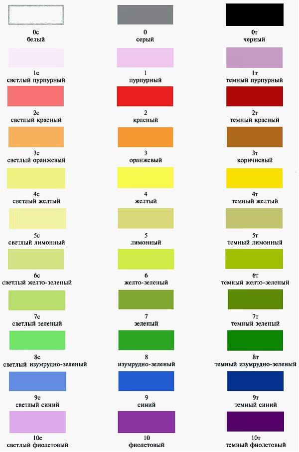 8. Обычной тушью воспроизводят цвета средней колонки опорной шкалы, указанные в табл. 4.