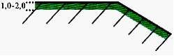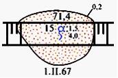 Вывал (купол) в выработке забученный в проекции на вертикальную плоскость на плане |