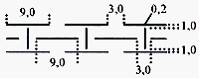 6. ОБОЗНАЧЕНИЯ ПРЕДОХРАНИТЕЛЬНЫХ СООРУЖЕНИЙ В ГОРНЫХ ВЫРАБОТКАХ6.1. Условные обозначения предохранительных сооружений в горных выработках должны соответствовать приведенным в табл. 11. В условных обозначениях 1 следует указывать номер перемычки. В условных обозначениях 2 следует указывать вид фильтра: Сф - сквозной или Зф - забивной; в условном обозначении 2б, кроме того, следует указывать местоположение фильтра в выработке: К - в кровле; П - в подошве или КП - в кровле и подошве.