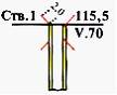Устье выработки вертикальной (в проекции на вертикальную плоскость и на разрезе) |