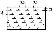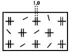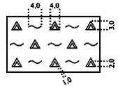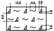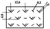 Если порода, залегающая в форме жилы или малой интрузии, не обладает структурными особенностями, предусмотренными условными обозначениями, приведенными в условных обозначениях 1 в табл. 24 настоящего стандарта и отличается только ей присущей структурой, то в элементы исходных условных обозначений основных групп магматических пород дополнений не вносят, но размещают их по прямоугольной сетке, параллельной рамкам чертежа (см. условные обозначения 4г и 4д в табл. 24 настоящего стандарта).