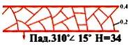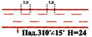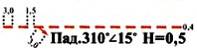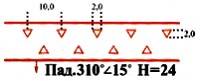 2.3. Изображение структурных и тектонических элементов Условные обозначения контактов пород, осей складок, элементов залегания пород, слоистости и трещиноватости, разрывных нарушений и залегания тектонических структур, линий скрещения разрывных нарушений с телом полезного ископаемого должны соответствовать приведенным в табл. 3. В условных обозначениях 3а и 4а стрелкой вдоль оси и цифрой рядом со стрелкой следует показывать направление и угол погружения оси складки, стрелкой, перпендикулярной к оси, и цифрой рядом с ней следует показывать направление и угол наклона осевой плоскости; стрелки следует помещать в точках изменения угла погружения оси и угла наклона осевой плоскости; при постоянных углах погружения оси и наклона осевой плоскости стрелки следует помещать через 15 - 20 см на плане; так же размещают стрелки, показывающие тип складки. В условных обозначениях 5а и 5г следует указывать угол падения пород в градусах, совмещая длинную сторону этих условных обозначений с контактом породы. В условном обозначении 6а следует показывать угол падения слоистости в градусах. В условных обозначениях 7 окружностью следует изображать точку наблюдения трещин (кливажа), показывая линией направление преобладающего простирания трещин и стрелкой - направление наклона трещин, указывая около нее угол наклона поверхностей, образованных трещинами; на планах по изучению трещиноватости над линией следует указывать количество трещин на квадратном метре (условное обозначение 7в). В условных обозначениях 8 - 12 стрелкой следует показывать направление падения плоскости смесителя, дирекционный угол направления падения, угол падения и амплитуду смещения в метрах на плане - вертикальную H, в проекции на вертикальную плоскость и на разрезе - горизонтальную L. Если для условного обозначения 8б эти данные берут из геологических материалов, а не получают по результатам измерений, то их следует заключать в скобки. В проекции на вертикальную плоскость стрелки и цифры указывать не следует. Условные обозначения 13 следует помещать около линии скрещения нарушения с лежачим и висячим боками тела полезного ископаемого. В условных обозначениях 16 длинной стороной следует изображать простирание дизъюнктивных структур; при изображении элементов залегания нарушения эту линию следует совмещать с линией нарушения (условное обозначение 8) или с контурной линией нарушения при масштабном изображении; в условном обозначении 16а следует указывать угол падения в градусах.