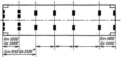 Черт. 3 Расположение опорных (контактных) площадок в основании контейнеров типоразмеров 1АА, 1А и 1АХ, имеющих паз для установки на полуприцеп с «гусиной шеей» а) при 6 парах опорных (контактных) площадок (минимум)