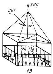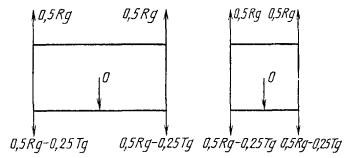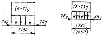 Черт. 4 Примечание. Сила 2 Rg действует на основание контейнера в продольном (поперечном) направлении и равномерно распределяется по ширине (длине). 5. Нагружение торцевой и боковой стенок контейнера