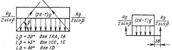 Черт. 4 Примечания: 1. Суммарная площадь каждой пары площадок - верхней А и нижней Б, которые следует рассматривать как составные части одной опорной (контактной) площадки в зоне паза, должна быть не менее 1250 мм2. 2. Если боковые элементы паза предусматриваются сплошными, опорные (контактные) площадки в зоне паза необязательны. (Измененная редакция, Изм. № 3). ПРИЛОЖЕНИЕ 2Обязательное ЗНАЧЕНИЯ СИЛ И СХЕМЫ ИХ ДЕЙСТВИЯ НА СРЕДНЕТОННАЖНЫЕ КОНТЕЙНЕРЫ ПО ГОСТ 18477На чертежах буквами обозначены: R и Rном, соответственно максимальная и номинальная массы брутто контейнера, кг; Т - его собственная масса, кг; g = 9,81 м/с2 - ускорение силы тяжести. 1. Штабелирование