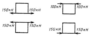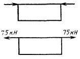 Черт. 13 Примечание. Сила 150 кН приложена поочередно или одновременно к каждому верхнему угловому фитингу контейнера со стороны одной боковой стенки сначала в сторону контейнера, а затем от него. Продольный перекос Черт. 14 Примечание. Сила 75 кН приложена поочередно или одновременно к каждому верхнему угловому фитингу контейнера со стороны одной торцевой стенки сначала в сторону контейнера, а затем от него. 12. Нагружение порожнего контейнера вертикальными растягивающими усилиями, действующими через угловые фитинги Черт. 15 13. Нагружение порожнего контейнера горизонтальными сжимающими и растягивающими усилиями, действующими через угловые фитинги В поперечном направлении