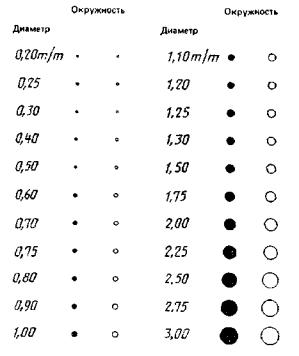 Размер «точки» и «круга» измеряют в отраженном или проходящем свете на микроскопе типа МБС-9 или любым другим инструментом с погрешностью измерения ±0,025 мм.