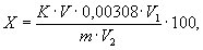 где 25 - количество раствора азотнокислого циркония, взятое для титрования соответственно в первый, второй и третий стаканы, см3; K1 - коэффициент молярности азотнокислого циркония; V - объем раствора трилона Б, использованный на титрование, см3. Отбирают пипеткой 50 см3 раствора, полученного, как указано в ГОСТ 20300.2, п. 2.3 или 3.4, и помещают в коническую колбу вместимостью 250 см3. В раствор опускают бумагу конго и по каплям приливают 25 %-ный раствор аммиака до покраснения бумаги и появления мути. Затем сразу приливают 3 см3 концентрированной серной кислоты до полного растворения гидроокиси и разбавляют раствор водой до объема 100 см3. Нагревают раствор до кипения, прибавляют 10 см3 раствора солянокислого гидроксиламина (для маскирования железа), 10 капель индикаторного раствора ксиленолового оранжевого и титруют 0,025 М раствором трилона Б до перехода окраски раствора из красной в желтую. Отмечают количество кубических сантиметров 0,025 М раствора трилона Б, израсходованное на титрование циркония. Раствор после титрования циркония оставляют для определения алюминия. 2.4. Обработка результатов 2.4.1. Массовую долю диоксида циркония (X) в процентах вычисляют по формуле