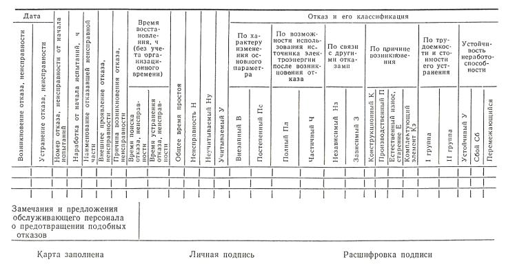 НАДЕЖНОСТИ Форма 1 КАРТА УЧЕТА ОТКАЗОВ И НЕИСПРАВНОСТЕЙ ПРИ ИСПЫТАНИЯХ ______________________________________________________________ наименование, тип, заводской номер электроагрегата, электростанции