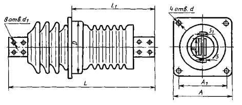 - для изоляторов наружно-внутренней установки: