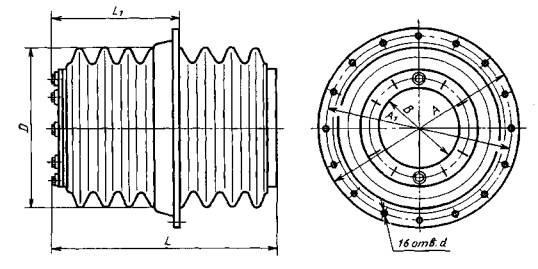 Положение фланцев на изоляторах на номинальное напряжение 35 кВ,