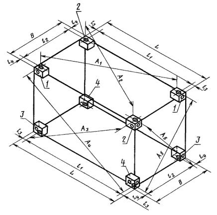 где Fн, Fв - значения сил, действующих на нижний и верхний фитинги при испытании, Н; М - масса брутто контейнера, кг; g = 9,81 м/с2 - ускорение свободного падения; n - число ярусов контейнеров при штабелировании. 13. Виды и характер допускаемых остаточных деформаций и дефектов после испытания фитингов на прочность - по технической документации, утвержденной в установленном порядке. 14. Фитинги предъявляют к приемке партиями, состоящими из отливок одной или нескольких плавок, выполненных на одной шихте по одинаковой технологии, прошедшие термообработку по одному режиму. Общее число фитингов в партии должно быть не более 800, в том числе каждого исполнения не более 200. Для проверки соответствия фитингов требованиям настоящего стандарта предприятие-изготовитель должно проводить приемочный контроль: - внешнего вида на соответствие требованиям пп. 5 - 9 - сплошной; - размеров на соответствие требованиям пп. 5 - 7 - по рабочим чертежам, утвержденным в установленном порядке, и п. 9 по соответствующей нормативно-технической документации; - химического состава и механических свойств стали на соответствие требованиям п. 10; - качества отливок - неразрушающим дефектоскопическим контролем по технической документации предприятия-изготовителя, утвержденной в установленном порядке, - в объеме 2 % фитингов от партии, но не менее чем на трех фитингах каждой плавки; - прочности на соответствие требованиям пп. 12, 12.1 - 12.3, 13 и соответствия массы фитинга технической документации предприятия-изготовителя - в объеме 1,5 % от партии фитингов каждого исполнения. 15. Каждый фитинг должен иметь маркировку. Маркировка должна содержать: - товарный знак или условный номер предприятия-изготовителя; - номер плавки; - две последние цифры года изготовления; - условный монтажный номер. Маркировку размещают так, чтобы она четко была видна после установки фитингов на контейнере. Способ и место нанесения маркировки, размер шрифта должны быть указаны в рабочих чертежах предприятия-изготовителя. ПРИЛОЖЕНИЕ 1Обязательное Расположение фитингов на контейнере