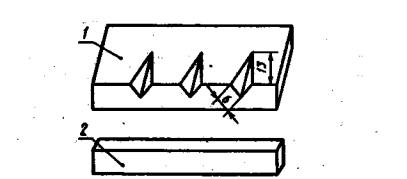1-форма для образца золы; 2- верхняя (формующая) пластинка к форме. Рисунок 1. Форма для изготовления трехгранных образное золы