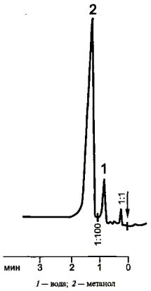 Если разделение пиков неполное, кондиционирование колонки повторяют до получения четкого разделения пиков метанола и воды.