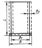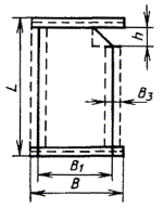 Мешок сшитый закрытый с фальцамиВ - ширина мешка с развернутыми фальцами; В1 - ширина мешка; L - длина мешка; В2 - ширина дна, наружная ширина клапана в склеенных мешках; В3 - ширина фальца в мешках; h - высота клапана Примечание. По согласованию с потребителем допускается изготовлять мешки со склеенным и сшитым дном и верхом Мешок склеенный открытый плоский с подвернутым дном