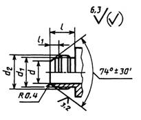 Дата введения 01.01.79 1. Настоящий стандарт распространяется на концы корпусных деталей с углом конуса 24е соединений трубопроводов, арматуры и гидро-пневмооборудования и на концы корпусных деталей для соединений с развальцовкой трубы с углом конуса 74° под накидные гайки. Обязательные требования к качеству продукции, обеспечивающие ее безопасность для жизни, здоровья и охрану окружающей среды, изложены в пп. 2, 3, 6 и 7 настоящего стандарта. (Измененная редакция, Изм. № 3). 2. Конструкция и основные размеры концов корпусных деталей с углом конуса 24° должны соответствовать указанным на черт. 1 и в табл. 1, концов корпусных деталей для соединений с врезающимся кольцом при радиальном монтаже - указанным на черт. 2 и в табл. 1, концов корпусных деталей для соединений с развальцовкой трубы - указанным на черт. 3 и в табл. 2. Концы корпусных деталей с углом конуса 24°