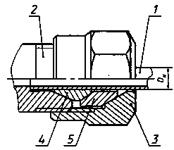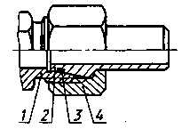 1 - конец корпусной детали; 2 - ниппель по ГОСТ 28941.27; 3 - труба; 4- гайка по ГОСТ 28941.26
