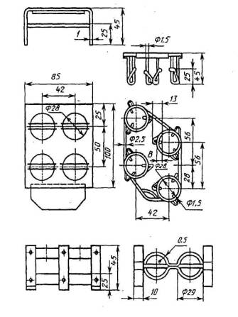 Подставка из жароупорной проволоки или листовой жаростойкой стали (см. чертеж) или любой другой конструкции. Размеры подставки должны обеспечивать возможность размещения тиглей в зоне постоянной температуры печи на расстоянии между подом печи и дном тигля от 10 до 20 мм.