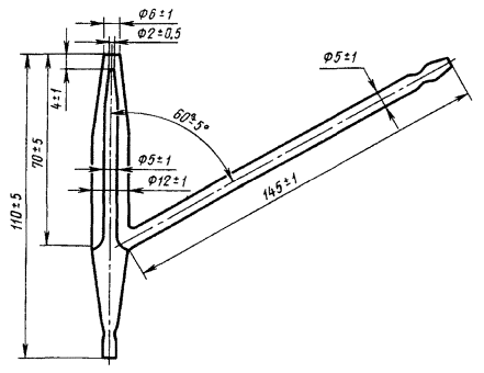 Постановлением Государственного комитета стандартов Совета Министров СССР от 22 февраля 1978 г. № 517 дата введения установлена 01.07.79 Ограничение срока действия снято по протоколу № 3-93 Межгосударственного Совета по стандартизации, метрологии и сертификации (ИУС 5-6-93) *Издание (декабрь 2000 г. ) с Изменениями № 1, 2, утвержденными в январе 1984 г., декабре 1988 г. ( ИУС 5-84, 4-89) Настоящий стандарт распространяется на сжиженные углеводородные газы, широкую фракцию легких углеводородов, а также пентановые фракции и устанавливает метод определения общей серы при ее массовой доле 0,001 % и выше. Сущность метода заключается в сжигании пробы в точке воздуха и последующем нефелометрическом определении образовавшейся серной кислоты. 1. АППАРАТУРА, РЕАКТИВЫ И МАТЕРИАЛЫ1.1. Установка для сжигания анализируемого продукта (черт. 1), содержащая: ампулы из термостойкого стекла (пирекс) вместимостью 20 и 50 см3 (черт. 2, 3); сосуд Дьюара или фарфоровый толстостенный стакан вместимостью 250 - 500 см3; горелку стеклянную из пирекса (черт. 4); стекло ламповое из пирекса или кварцевого стекла (черт. 5); холодильник ХПТ-1-300-14/23 ХС по ГОСТ 25336-82 или аналогичного типа; аппараты для определения содержания серы в нефтепродуктах (абсорбер, каплеуловитель, лампочка с колпачком); 1 - ампула; 2 - сосуд Дьюара; 3 - горелка; 4 - ламповое стекло; 5 - холодильник; 6 - абсорбер; 7 - склянка для очистки воздуха; 8 - каплеуловитель; 9 - трехходовой кран; 10 - ловушка; 11 - предохранительная колба Черт. 1 Ампула вместимостью 20 см3 Черт. 2 Ампула вместимостью 50 см Черт. 3 Стеклянная горелка Черт. 4 Ламповое стекло Черт. 5 краны соединительные стеклянные общего назначения по ГОСТ 7995-80; колба 1-500, 2-500 по ГОСТ 25336-82; насос водоструйный по ГОСТ 25336-82. Спиртовка СЛ-1 по ГОСТ 25336-82 или аналогичного типа. Склянка СПТ по ГОСТ 25336-82 или аналогичного типа. Колба 2-50-2, 2-100-2, 2-250-2, 2-1000-2 по ГОСТ 1770-74. Цилиндр 1-10, 1-50 по ГОСТ 1770-74. Пипетки 2-2-5, 2-2-10, 2-2-25, 4-2-1, 4-2-2, 5-2-1, 5-2-2, 6-2-5, 6-2-10, 7-2-5, 7-2-10 по ГОСТ 29227-91. Бюретки 6-2-2, 6-2-5 или 7-2-3, 7-2-10 по ГОСТ 29251-91. Стаканы типа В-1-100 по ГОСТ 25336-82. Колбы типов Кн-2-100, Кн-2-250, Кн-2-500 по ГОСТ 25336-82. Сетки металлические проволочные по ГОСТ 2715-75. Сетки тканевые гладкие с квадратными и прямоугольными ячейками, мелкие, нормальной плотности, из термически обработанной медной, латунной или стальной нержавеющей проволоки/ Вентиль редукционный или игольчатый. Воронки типа ВПр-1 по ГОСТ 25336-82. Трубки медицинские резиновые или трубки резиновые технические, диаметром 6 - 8 мм. Пробоотборник по ГОСТ 14921-78. Колориметр (нефелометр) фотоэлектрический типа ФЭК-56М или любого другого типа, аналогичного по чувствительности. Мешалка магнитная типа ММ-2 или аналогичного типа. Весы лабораторные общего назначения по ГОСТ 24104-88: с максимальным пределом взвешивания 200 г, с ценой деления не более 0,0001 г не ниже 2-го класса точности; с максимальным пределом взвешивания 1000 г, с ценой деления не более 0,1 г. Зажимы металлические винтовые и пружинные. Секундомеры механические или аналогичного типа. Термометры стеклянные по ГОСТ 400-80, типа ТН-8. Водорода перекись по ГОСТ 10929-76, х. ч. или ч. д. а., раствор с массовой долей 3 %. Спирт этиловый ректификованный технический по ГОСТ 18300-87 или спирт этиловый технический по ГОСТ 17299-78 марки А. Вода дистиллированная по ГОСТ 6709-72. Методы приготовления вспомогательных реактивов и растворов, применяемых в анализе по ГОСТ 4517-87. Вода дистиллированная, д