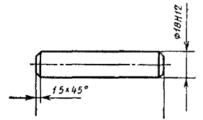 где m1, m2 ... mn - масса элементов маятника, кг; l1, l2 ... lп - расстояние центров массы элементов маятника от оси подвески, мм; п - число элементов маятника. 3.7. Форма и размеры ударного груза с запасом потенциальной энергии 200 Дж для копров МК30, а также МК30А, 2010 КМ-30, 2011 КМ-30 приведены в справочном приложении 1. 3.8. Требования к нагревательным и охлаждающим устройствам и аппаратуре - по ГОСТ 9454-78. (3.1 - 3.8. Новая редакция, Изм. № 1). (Измененная редакция, Изм. № 1). Материал - сталь марки Ст 40. Черт. 5 4. ПРОВЕДЕНИЕ ИСПЫТАНИЙ4.1. Проведение испытаний паяных образцов на ударный изгиб 4.1.1. Испытание на ударный изгиб следует проводить на образцах типов I-III (см. черт. 1-3) при температуре 20±5 °С или при температурах от минус 100 до плюс 1000 °С в соответствии с требованиями технической документации на изделие. 4.1.2. Расстояние между опорами маятникового копра при испытании должно быть 40±0,5 мм. 4.1.3. Порядок проведения испытаний на ударный изгиб - по ГОСТ 9454-78. (Новая редакция, Изм. № 1). 4.1.4. Испытание образцов типа I рекомендуется проводить с прокладками, обеспечивающими перпендикулярность паяного шва плоскости движения маятника. 4.2. Проведение испытаний паяных образцов на ударный срез 4.2.1. Испытания на ударный срез следует проводить на образцах типа IV при температуре 20±5 °С или при температурах от минус 100 до плюс 20 °С в соответствии с требованиями технической документации на изделие. 4.2.2. Расстояние между опорами маятникового копра при испытании должно быть 45+5 мм. 4.2.3. Образец следует ввести в полость ударного груза до совмещения отверстий диаметром 18 мм в образце и стенках ударного груза и закрепить его фиксатором. Боек необходимо ввести в наружное отверстие образца и установить на выступы ударного груза. Форма и размеры фиксатора и бойка должны соответствовать указанным на черт. 6. Длина фиксатора - 40 мм, длина бойка - 90 мм. Примечание. Регулировку отсчетного механизма копра необходимо проводить в соответствии с инструкцией по эксплуатации копра до установки бойка. 4.2.4. При проведении испытаний при пониженных температурах образцы перед установкой на копер должны быть переохлаждены. Степень переохлаждения и порядок проведения испытаний - по ГОСТ 9454-78. Охлаждение образцов необходимо проводить вместе с фиксаторами и бейками. (Новая редакция, Изм. № 1). 4.2.5. Испытание паяных образцов следует проводить при одном ударе маятника. 4.3. Испытаниям следует подвергать не менее пяти образцов. Объем испытаний рекомендуется определять по ГОСТ 25.503-80. (Новая редакция, Изм. № 1). Материал - сталь марки 35Х, HRC 55-60 Черт. 6 5. ОБРАБОТКА РЕЗУЛЬТАТОВ5.1. Относительную работу разрушения паяного образца (А) в Дж/мм2 вычисляют по формуле