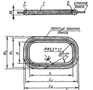 Черт. 4 2.1.4. Материал - стекло плоское закаленное полированное 1-го сорта толщиной 5 - 6 мм по ГОСТ 5727-83. Черт. 5 Таблица 6 Размеры, мм