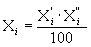 где h - высота пика, мм; а - ширина пика, измеренная на половине высоты, мм; b - масштаб записи хроматограммы. Углеводороды C6 и выше фиксируются на хроматограмме в виде неполностью разделенного пика. Площадь пика разбивают на геометрические фигуры и вычисляют сумму площадей этих фигур. Для оценки хроматограмм можно использовать интегратор или электронный процессор. 1.5.1.3. Объемную долю каждого компонента в испытуемом газе (Xi) в процентах вычисляют по формуле