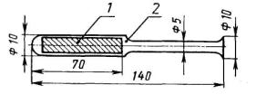 1 - железный стержень; 2 – кварцевая трубка Рисунок 3 - Магнитный толкатель 5.2.2.4. Магнитный толкатель (рисунок 3), представляет собой кварцевую трубку, внутрь которой впаян железный стержень.
