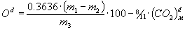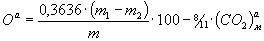 где m - масса навески воздушно-сухого топлива, г; m1 - суммарное увеличение массы поглотительных сосудов для диоксида углерода при проведении определения, г; m2 - суммарное увеличение массы поглотительных сосудов для диоксида углерода при проведении холостого опыта, г; 0,3636 - коэффициент пересчета массы диоксида углерода на кислород;
