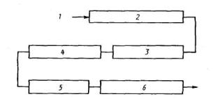 1 - азот максимально доступной чистоты; 2 - линия очистки азота; 3 - трубка для пиролиза в сборке; 4 - трубка для очистки оксида углерода; 5- трубка для окисления оксида углерода; 6 - определение диоксида углерода Рисунок 5 -