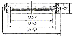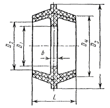 Пример условного обозначения Г-образной прокладки для трубы Dн = 45 мм из пищевой резины: Прокладка Г 45-П ГОСТ 24188-80 То же, из кислотощелочестойкой: Прокладка Г 45-К ГОСТ 24188-80 То же, из теплостойкой: Прокладка Г 45-Т ГОСТ 24188-80 4б. Конструкция и основные размеры муфтообразной прокладки должны соответствовать указанным на черт. 5 и в табл. 5. Черт. 5. Таблица 5 Размеры в мм