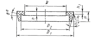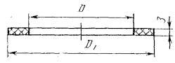 * Прокладка предназначена для соединения конических клапанов с трубами с гладкими концами. Примечание. Масса указана для корда плотностью 1,43 г/см3. Пример условного обозначения конической прокладки для трубы с коническими буртами Dу = 50 мм: Прокладка кон. 50 ГОСТ 24188-80 То же, для исполнения 1: Прокладка кон. 50-1 ГОСТ 24188-80 То же, для соединения конических клапанов с трубами с гладкими концами: Прокладка кон. соед. 80 ГОСТ 24188-80 4е. Конструкция и основные размеры плоских прокладок должны соответствовать указанным на черт. 9 и в табл. 8. Черт. 9 Таблица 8 Размеры в мм