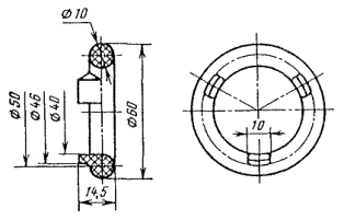 Дата введения 01.07.81 Несоблюдение стандарта преследуется по закону 1. Настоящий стандарт распространяется на уплотнительные кольца, применяемые в соединениях стеклянных труб наружным диаметром 45 мм с трубными досками воздухоподогревателей (теплообменников). Требования настоящего стандарта являются обязательными. (Измененная редакция, Изм. № 2). 2. Конструкция и основные размеры уплотнительных колец должны соответствовать указанным на чертеже.