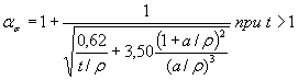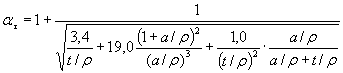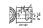 где d0 = 7,5 мм - диаметр гладкого лабораторного образца; K1 = 0,74 для d > 150 мм. Для углеродистых сталей К1 = 1. 1.3.2, 1.3.3. (Исключены, Изм. № 1). * Формулы 16 и 17. (Исключены, Изм. № 1). 1.4. Определение теоретических коэффициентов концентрации напряжений ασ, ατ1.4.1. Коэффициенты ασ, ατ определяют по теоретическим решениям или на основе измерений с помощью поляризационно-оптического метода, тензометрирования и т.п. (приложение 3, черт. 1-47). 1.4.2. Для определения теоретических коэффициентов концентрации напряжений в деталях, изображенных в табл. 2, могут быть использованы также номограммы, приведенные на черт. 48 и 49 приложения 3. Примечания: 1. Пример использования номограмм для элементов с двусторонней внешней выточкой при изгибе. Дано: ρ = 2,5 мм; t = 15 мм; а = 95 мм. Находим Как вытекает из табл. 2, для 2. Пример использования номограммы для элементов с внешней выточкой и осевым отверстием при изгибе. Дано: ρ = 4 мм; а = 13 мм; t = 36 мм; r = 25 мм. Находим Как указано в примере 1 при Теперь переходим к черт. 49 и смещаемся вверх по вертикали при значении Таблица 2 Конструктивные случаи для определения теоретических коэффициентов концентрации ασ и ατ по номограмме (приложение 3, черт. 48, 49)