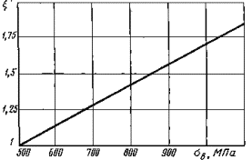 Примечание. 1.2.3.3. В приближенных расчетах значения Кσ и Кτ вычисляют по формулам: Кσ =1 + q(ασ-1), (18)* Кτ =1 + q(ατ-1), (19) где значения коэффициентов чувствительности металла к концентрации напряжений q определяют по черт. 15 приложения 2. 1.3. Определение коэффициентов К11.2.3.1.-1.3. (Измененная редакция, Изм. № 1). 1.3.1. Коэффициент К1 для легированных сталей определяют по черт. 16 приложения 2 или по формуле
