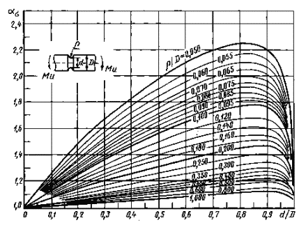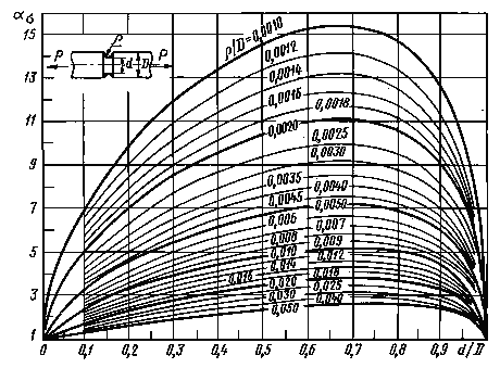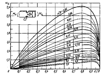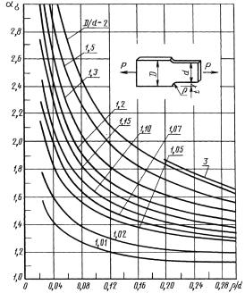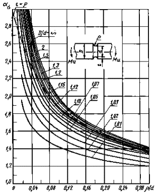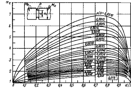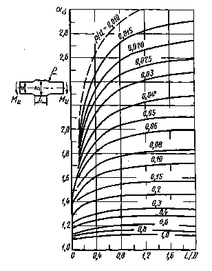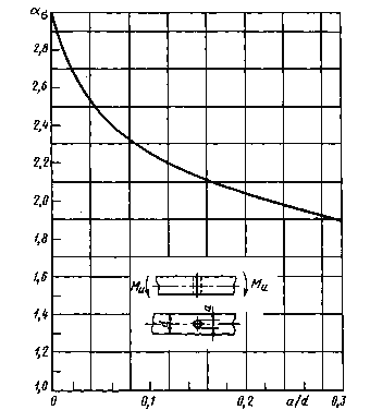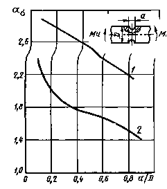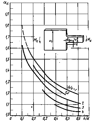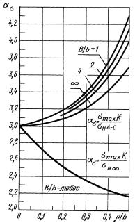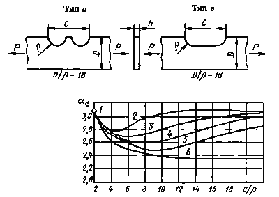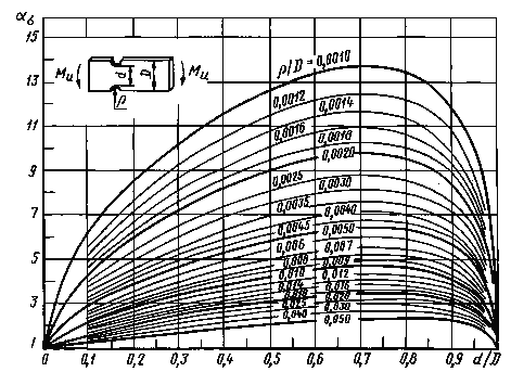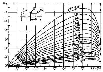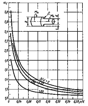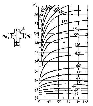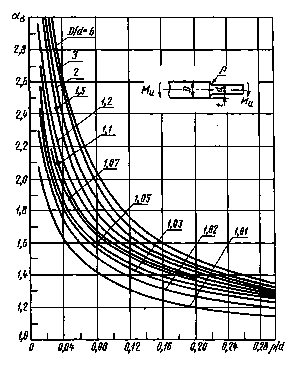 Теоретические коэффициенты концентрации ασ, ατ предлагается определять по номограммам и формулам Нейбера, по графикам, приведенным в работе [8], а также по приближенной формуле (25), заимствованной из TGL 19340. Последнюю формулу используют в случае необходимости вычислений ασ на ЭВМ.