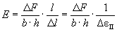 где Δl - абсолютное удлинение расчетной длины образца при разрушении, мм; l - начальная расчетная длина образца, мм. 6.4. Модуль упругости при растяжении (Е), МПа, определяют по формуле