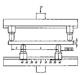 случае испытаний на поперечный изгиб устанавливают расстояние между опорами l